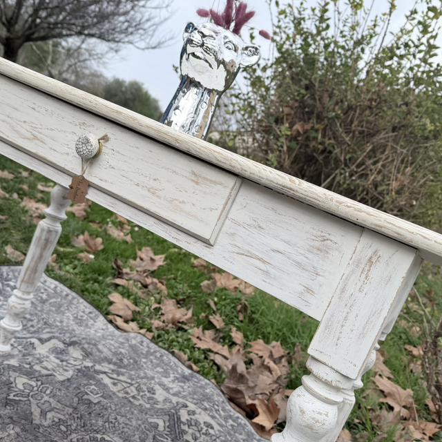 Belle table champêtre refaite avec son effet usé par le temps lui re-donne un coté authentique avec son charme d'antan